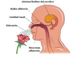 Así, los olores entran por la nariz y se ponen en contacto con el epitelio olfatorio que está en la parte alta de la nariz o del tabique.