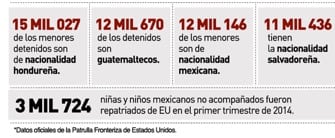 • 3,819 menores procedentes de Centroamérica fueron deportados desde Méxicp entre octubre de 2014 y febrero de 2015, lo cual representa un incremento de 56% con respecto al mismo periodo del año anterior.