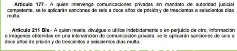 • Además, son acciones violatorias del artículo 16 constitucional que protege las comunicaciones privadas, por lo que se puede acusar a los responsables de incurrir en delitos federales que se consideran graves.