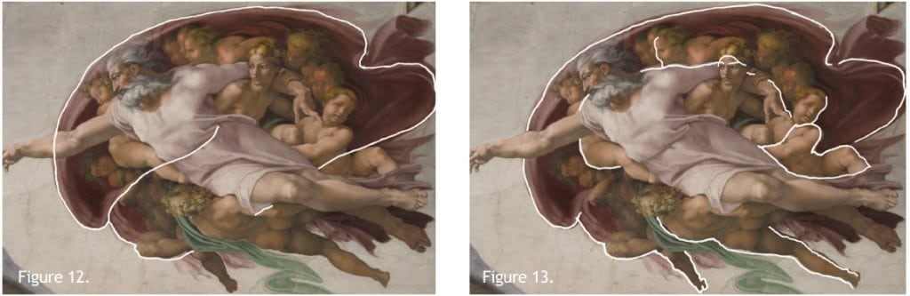 A. Siempre aparece con Eva y generalmente ella en el punto de fuga o foco. Es un acompañante. B. La más importante de él, es la famosísima de Miguel Ángel (1475-1564) en la Capilla Sixtina: Dios dando vida a Adán (1511)1. De aquí resaltar: • No es relevante para Miguel Ángel como momento religioso, es pretexto para mostrar la perfección del cuerpo humano. • Si observan completa la imagen de Dios, es o parece una imagen del cerebro partido a la mitad. (Dr. Frank Mershberge en 1990 “Diario de la Asociación Médica Americana” y Doctores Ian Suk y Rafael Tamargo los más recientes en la revista científica Neurosurgery : “Neuroanatomía de Separación de la Luz y las Tinieblas de MA”3)