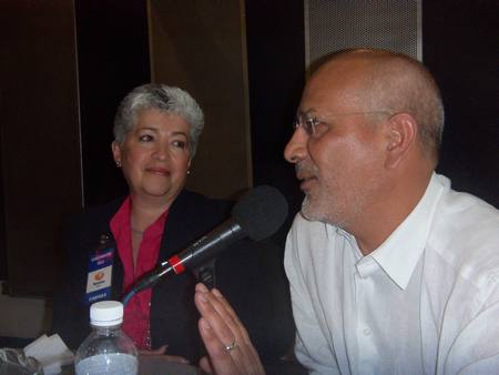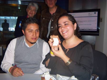 Ruth y Carlos llegando con Martha a recibir sus premios
