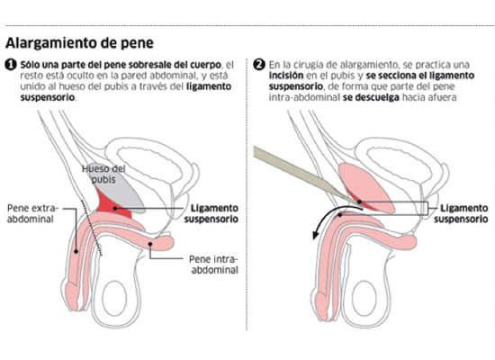 1. La operación desconecta un ligamento del pene que sujeta la parte superior en la zona pubococcígea.