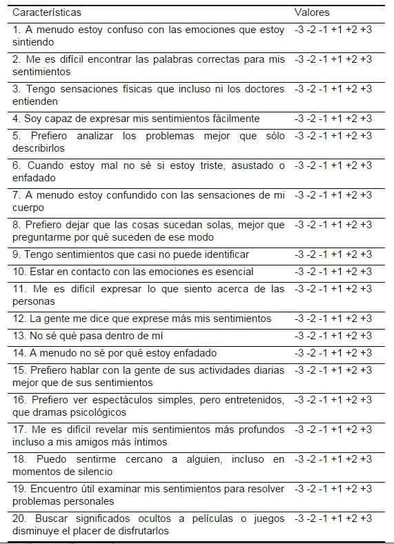 *Menos de 50 puntos: ausencia de alexitimia