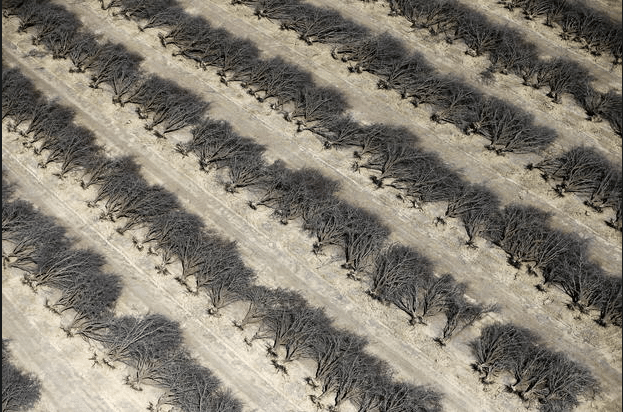 Así es como se ve un campo de almendros (muertos).