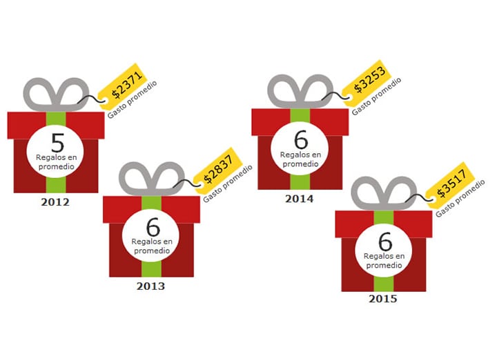 El resultado reveló que, al igual que en 2014, el gasto será de unos $3,500 pesos en 6 regalos, mientras que en 2012, el gasto fue de $2,300 pesos. Este año, el dinero será principalmente destinado a ropa, juguetes, zapatos, perfumes y accesorios. Por último, quedan DVD’s y CD’s (ya todo está en el celular…).